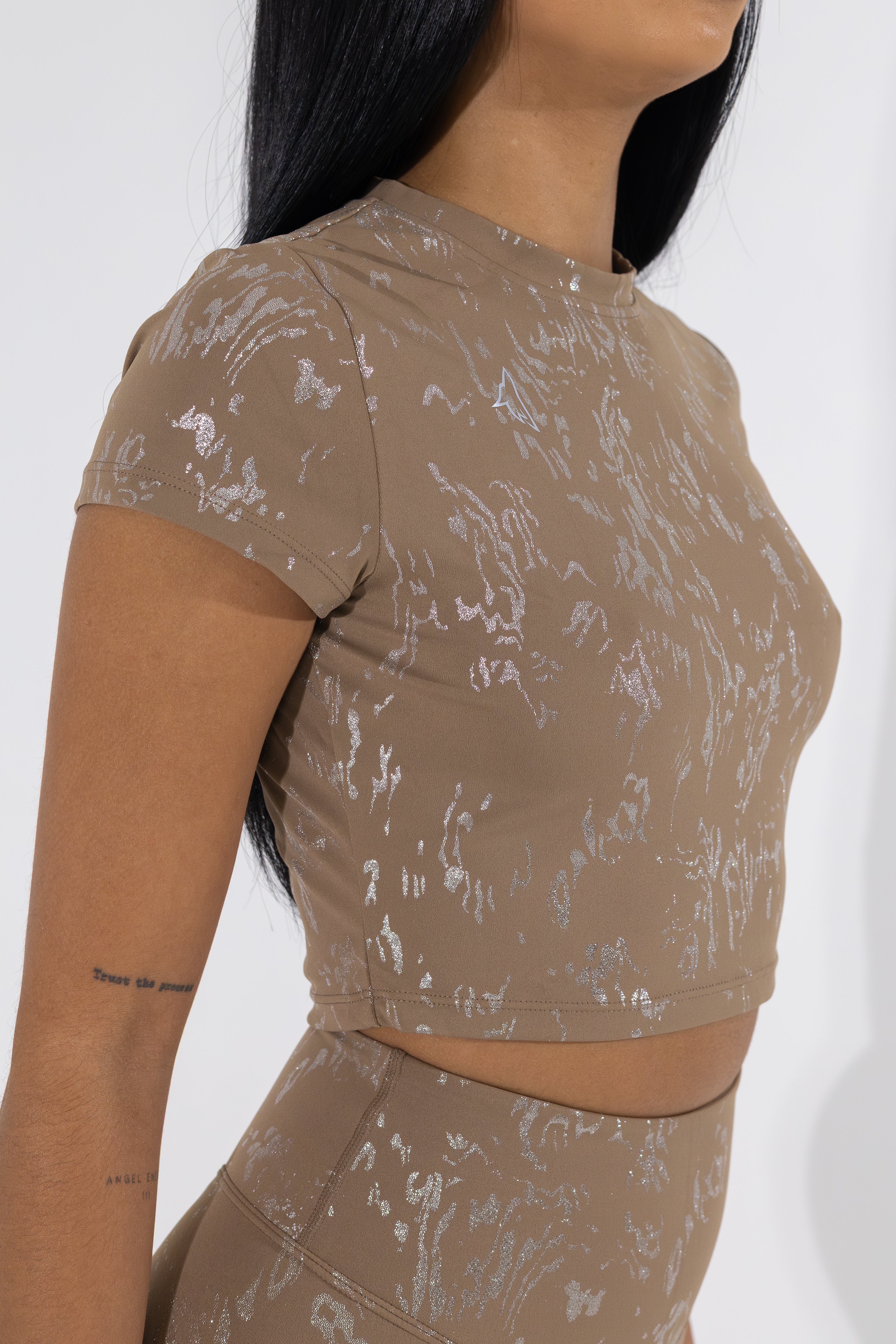 The Nova Crop Top blends performance and style with a sleek metallic finish. Designed with a smooth, compressive fabric that contours your body and moves with...
